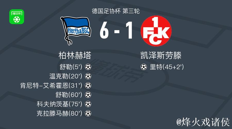 柏林赫塔6-1横扫凯泽斯劳滕,舒勒梅开二度,克拉滕建功